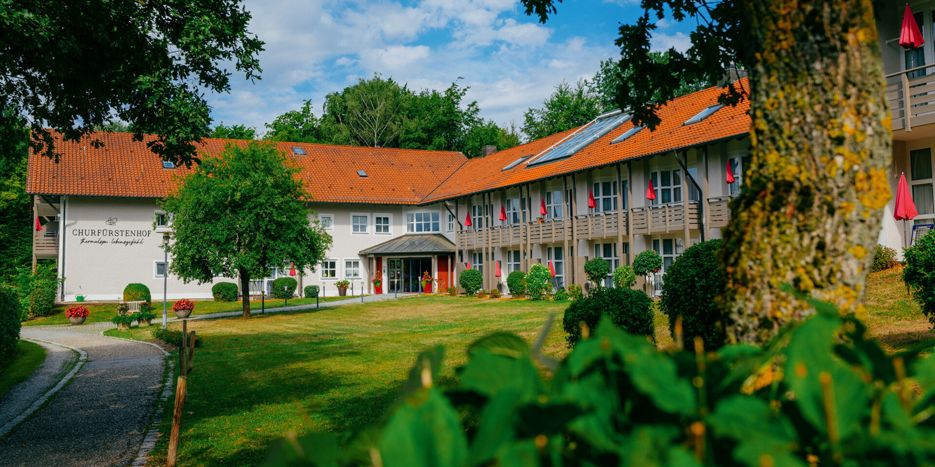 Unser Wellnesshotel liegt perfekt zwischen einer kleinen Au, den weiten Rottaler Feldern mit schier endlosen Rad- und Wanderwegen und dem Golfpark Bella Vista. Auf der anderen Seite befindet sich fast in Sichtweite die gesunde Rottal Terme und das moderne Atrium. Die Bad Birnbach Rose umrahmt unseren Churfürstenhof-Garten.
