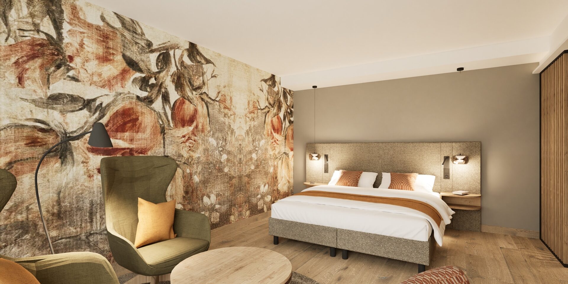 Große Flat-TVs, Minibar, großzügige Komfortdusche/WC, größtenteils Balkon oder Terrasse und überall stimmungsvolle Lichtkonzepte.