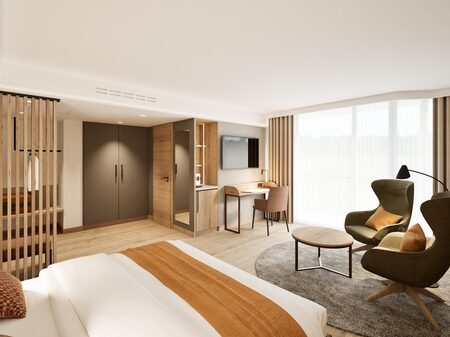 Boxspringbetten (Bettengröße 2,00 x 2,00 m), geräumige Dusche/WC, Föhn, Safe, Minibar, Flachbild-TV. Bademantel, Bade- & Saunahandtücher samt Leihbadekorb stehen Ihnen selbstverständlich ebenfalls während Ihres Aufenthaltes zur Verfügung.